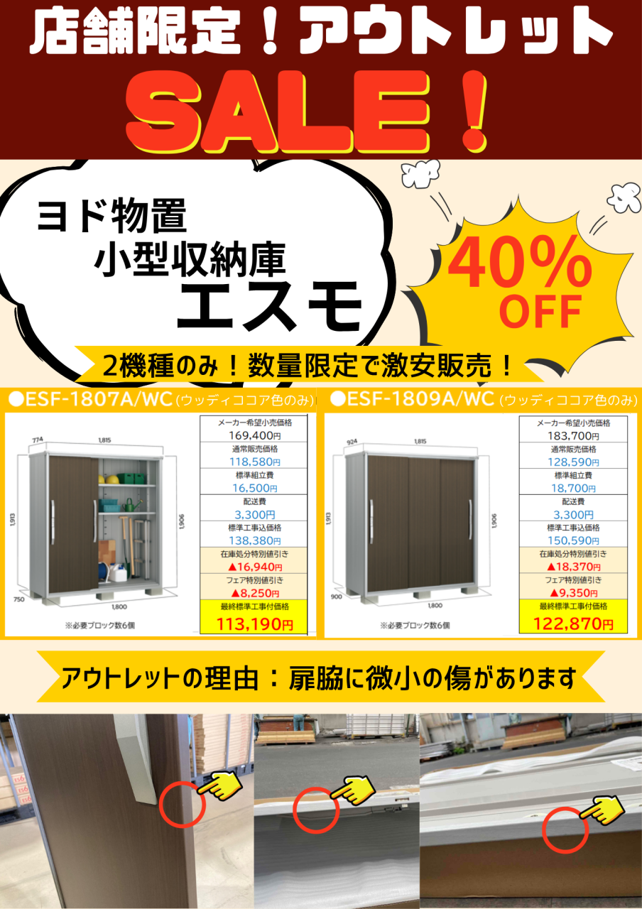 現在ヨドの収納庫のサイズ限定で、特別セールを開催しております。 在庫がなくなり次第、販売終了となります。このお得な機会をお見逃しなく!!